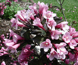 | growing season. Trumpet shaped deep pink flowers. |